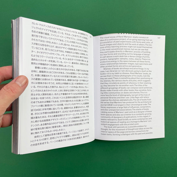 Featuring intimate photographs from the Dutch graphic designer's studio. Published for his exhibition at Ginza Graphic Gallery in Tokyo, it highlights his personal, experimental process with full-color and black-and-white images, plus texts by David Senior and Martens himself.
