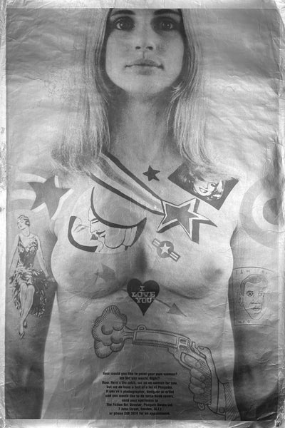 Alan Aldridge stated, "In 1967 I was asked to paint a naked lady for Penguin Books, to be used in a job advertisement for cover designers. It didn't go down too well with the company's founder, Mr Allen Lane, but it got an enthusiastic response from many art students all across Britain."