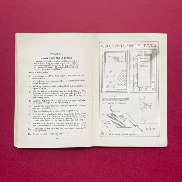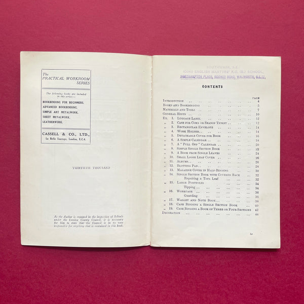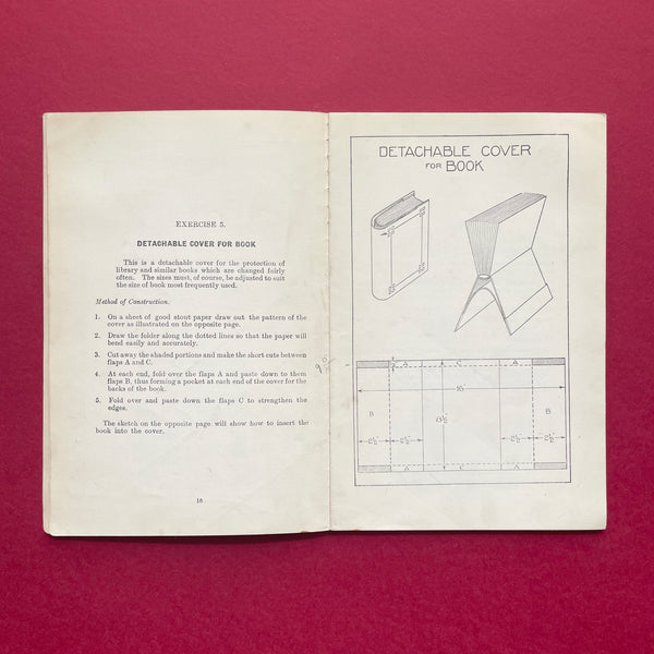 (Introduction) 'This little book is intended to bridge the gap between the paper-cutting and simple modelling of the lower classes of the Junior School and the more definite craft work of the Senior School. It does not profess to teach a craft. No book can do that fully. Some preliminary exercises, however, involving sound constructional methods and introducing the common materials used in the work, are a necessary preparation for any craft. The Exercises in this book will be found to involve most of the simpler processes required in the work of binding books. The latter will be dealt with in another book of the series-" Advanced Bookbinding" —which deals with the sewing, forwarding, covering and finishing of books...'