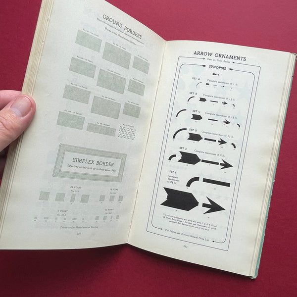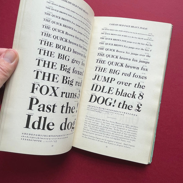 (Preface) 'It is virtually impossible to show the full scope of an enterprising typefounder's resources in any book weighing less than a few score pounds. Consider for a moment the area of paper required to show, to the interested printer, the full potentialities of, say, Caslon Old Face or Plantin, with the ability of these types for almost every aspect of book work and jobbing display. Consider again the number of pages we should want to demonstrate to the full the rich colour and weight of Playbill or Titling Face Open. And, most demanding of all, the subject of decorative units and borders would require a book in itself.