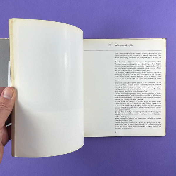 (Introduction) 'For Heraclitus, ultimate creative force lies in motion and change which govern both the atom and cosmic movement in a balance of birth and destruction. Today, at the beginning of a new world age, motion, process, and relativity have become basic concerns of intelligent humanity. The artist, an originator as well as a sensitive interpreter of the spiritual forces shaping history, recognises and reflects this deep involvement and has again transformed complex philosophical and theoretical systems into images which can be understood by all who have sharpened their visual perception. Process, relativity, and motion are essential concerns of the seemingly chaotic artistic production of our time. Most contemporary creators show us a universe in dynamic flux. But none of them has concentrated his attention on the relativity of visual phenomena as tenaciously as Josef Albers...'