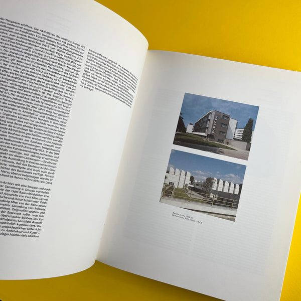 (Introduction/Translation) 'When the Bauhaus Archive presented a selection of works from its collection to the Bauhaus Dessau for a few weeks in the summer of 1988, this event was sure to attract considerable attention. For the first time, Bauhaus works gathered in the West would be on display in Walter Gropius's glass-enclosed Bauhaus building, which since its construction has been considered the epitome of modernism in architecture and design. The exhibition's appeal lay not only in the fact that some of the selected objects were created there and thus temporarily returned to their place of origin. The Bauhaus Dessau, the exhibition's host, had itself become a focal point for Bauhaus research and revival in East Germany in recent years. This presented an opportunity to examine cultural commonalities and differing perspectives firsthand. This was made possible by the cultural agreement concluded between the governments of the two German states...'