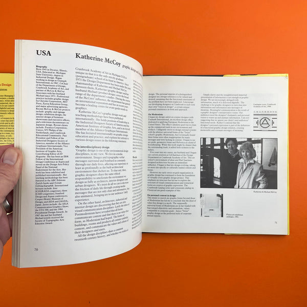 The contributors are a mixed collection of both young and old . . . both classic and controversial. Many are internationally known; a few relatively unknown. But all are producing innovative work, or making an impact on the profession, whether through education or practice or both. Each designer is represented by a visual display of work and a biographical statement. In many cases, the designers themselves speak about their work, influences, attitudes and concerns, and the way they integrate into what was, until recently, a male dominated field of endeavour.