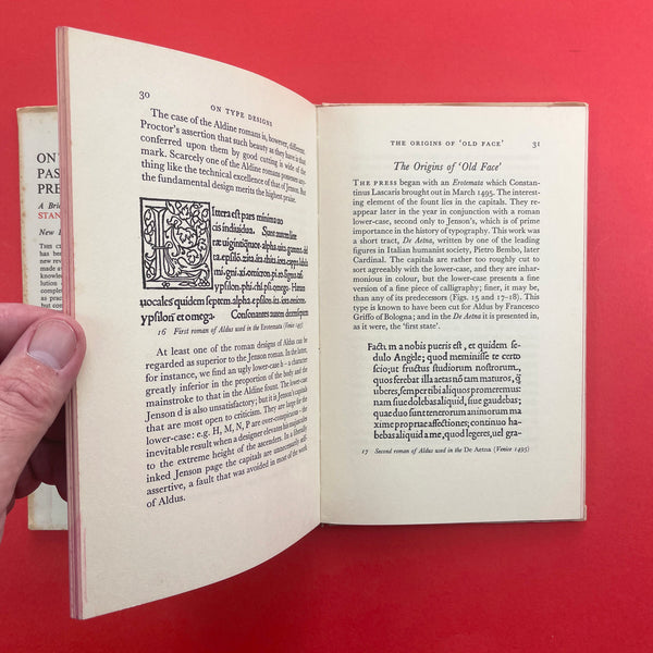 (Preface) 'THIS CLASSIC of typographical history has been long unobtainable, and this new revised and enlarged edition is now made available. It is obvious that some knowledge of the history of the evolution of type design is essential to a complete understanding of typography as practised today. The story is briefly but completely told, taking the reader from the Carolingian script, and the evolution of national styles in calligraphy, through the first known designed type faces sponsored by Jenson and Aldus; with chapters on Garamond, Granjon from France, van Dyck and the Dutch letter, the birth of the 'modern' face, Grandjean, Fournier and Fleischman.