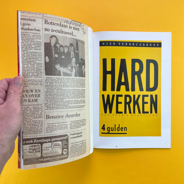 (Preface) 'This is the first publication to present an overview of Hard Werken's history. It is published on the occasion of the special Hard Werken exhibitions in the Karmeliterkloster in Frankfurt am Main, Germany, and the Kunsthal Rotterdam. We are very grateful to Paul Hefting and Dirk van Ginkel for their personal contributions and the many interviews they had with Joep Bergmans, Henk Elenga, Gerard Hadders, Tom van den Haspel, Bart Jan Jansen, Willem Kars, Hendrik Ten Cate en Rick Vermeulen. This publication was made possible by the generous support of the Mondrian Foundation Amsterdam, Neroc Amsterdam, Grafinoord Amsterdam, the Dutch Ministry of Foreign Affairs and the Dutch Design Institute. We owe special thanks to Professor Friedrich Friedl, who has backed the project from the start. Finally, I would like to thank the exhibition's initiator, Wim Pijbes, who organised the exhibition and supervised the enthusiastic collaboration between the two institutes involved.'