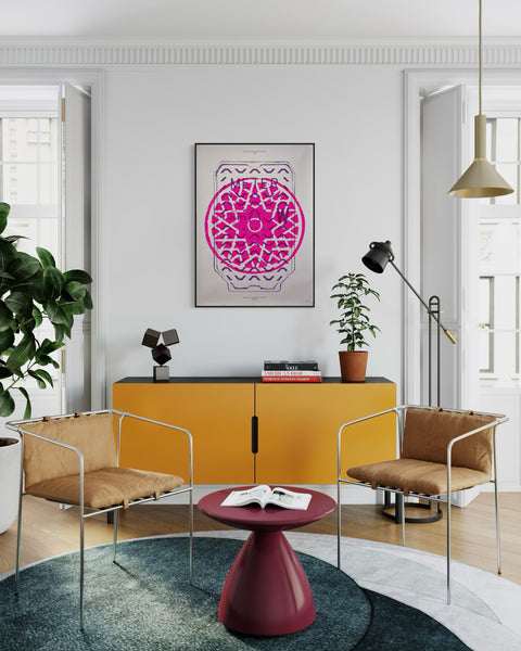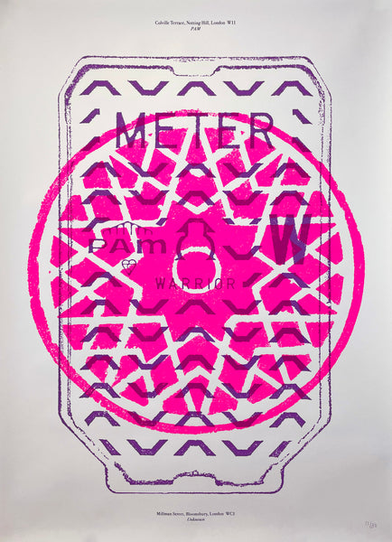 'This poster is one of a series of eight produced by award winning design consultancy, Pentagram Design Limited, for their exhibition ‘Overlooked’ (2016) at the London Design Festival. The exhibition showcased a series of screen printed posters featuring rubbings taken from 22 London street covers, from Islington to Kensington. The project celebrated street covers as impeccable examples of industrial design and aimed to show that 'a city’s beauty isn’t limited to art galleries or grand architecture, and that intricate design is everywhere'. The exhibition followed the success of the award-winning Pentagram Paper (No. 45) by the same name.' (Source) Victoria & Albert Museum