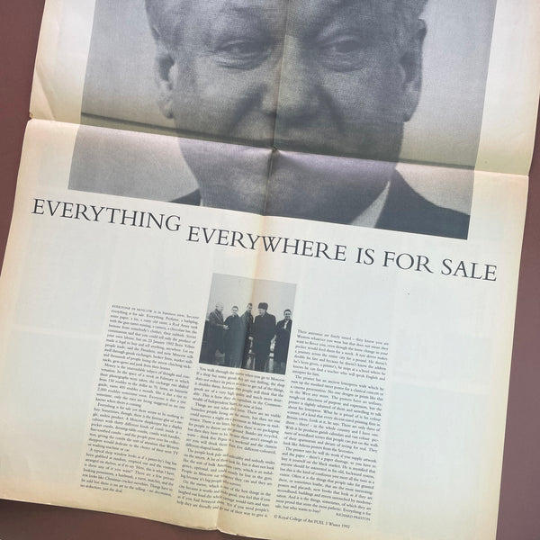 Issue #3 USSR was created on location in Moscow in the chaotic winter of 1991–92, mere months after the Soviet collapse. Murray, Sorrell and Miles smuggled a photocopier into Russia, scavenged local presses and shot crumbling Lenin statues, bootleg ads and newborn street capitalism. Printed black + red on cheap newsprint, it mixed decaying propaganda with explosive new commercial graphics. With no text beyond fragmented Cyrillic and English slogans, USSR transformed FUEL from pure formal experiment into urgent visual anthropology—directly foreshadowing the obsessive Russian-themed books that would define the later FUEL publishing house.