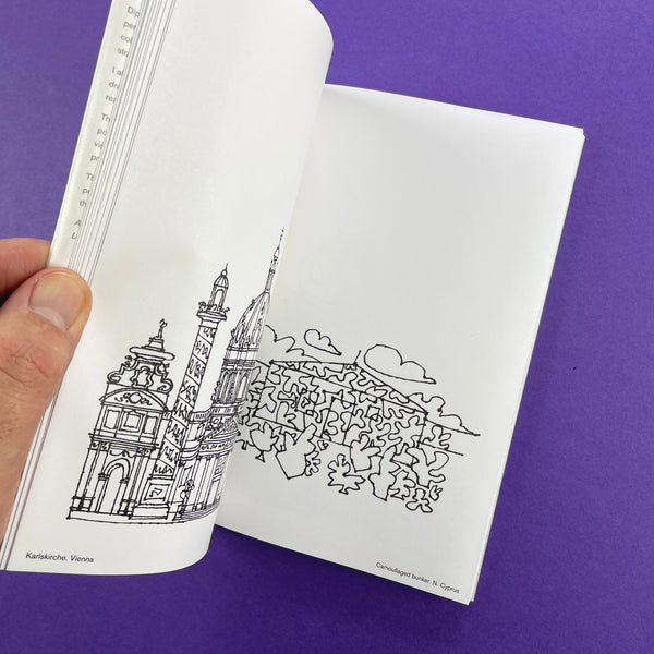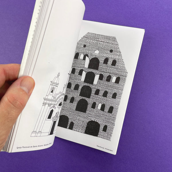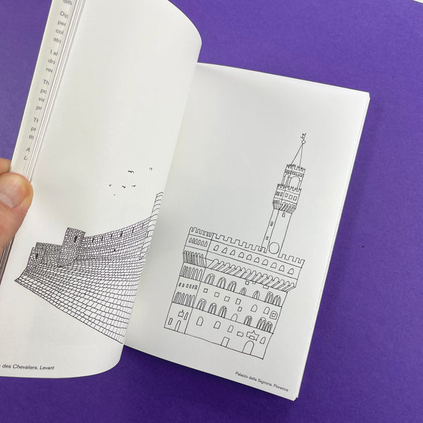 Monographica 3: Facades – 'These facades were constructed with a variety of pens and pencils on various papers by different methods. Dip-pens, rollerballs, ballpoints, fibre-tips, soft pencils, hard leads. Coarse cartridge, smooth cold press, handmade papers, laid and wove stock, blotting paper. I also introduce constraints. For example drawing a facade upside-down or back-to-front really concentrates the mind. The buildings were loosely copied from postcards, photographs, travel books and other visual references. No travel expenditure, no problems with inclement weather. The objective was to reverse the architectural process by reducing volume to line, to convert three dimensions into two, to flatten space.' Alan Fletcher, London 2006