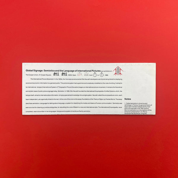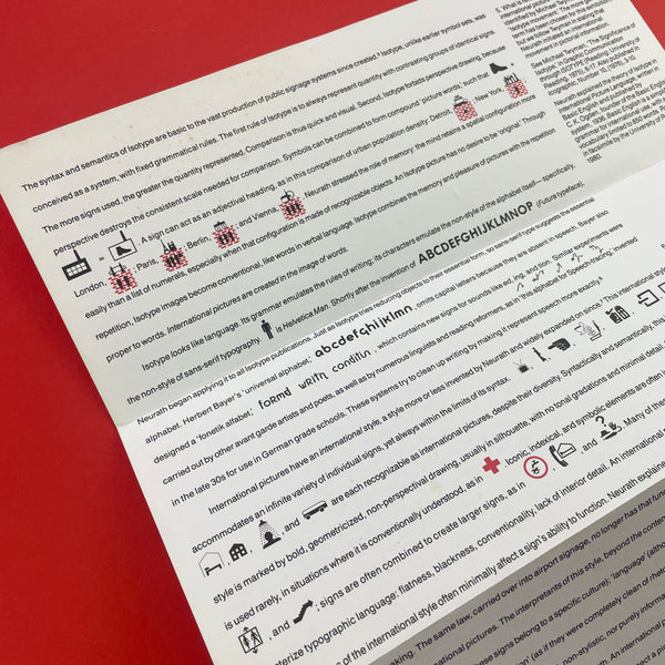 This folded broadside accompanied an exhibition curated by Ellen Lupton at the Herb Lubalin Study Center, Cooper Union, in 1986. The project explored the legacy of Otto Neurath and the Isotype system of pictographic education.