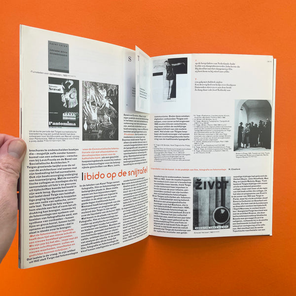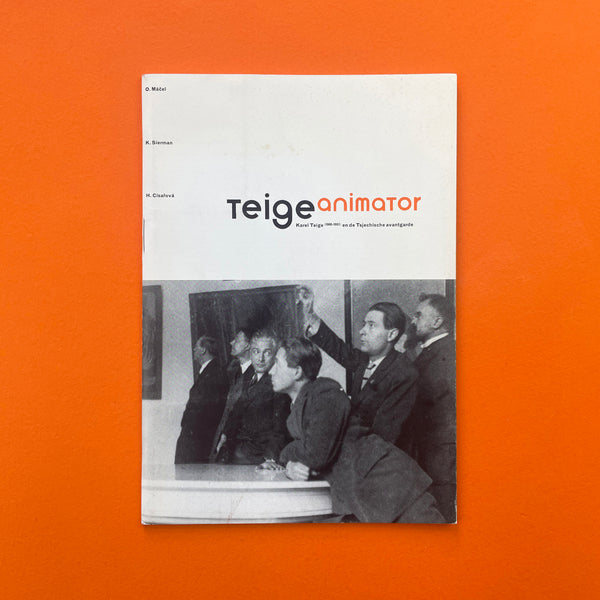 "Teige animator" is the 1994 Stedelijk Museum Amsterdam exhibition catalogue on Karel Teige (1900–1951), a key Czech modernist avant-garde figure: theorist, critic, graphic designer, typographer, poet, and Devětsil leader who shaped Poetism and surrealism in Czechoslovakia. It highlights his multifaceted role in the Czech avant-garde (1918–1938/1951), emphasizing his theoretical influence over artistic output, with illustrations of works like book designs (e.g., Abeceda facsimile) and collages.