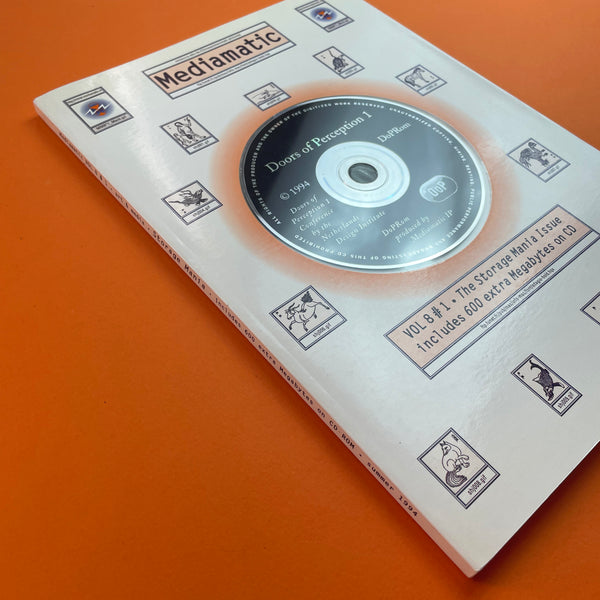 Mediamatic Magazine – Exquisite 20th century media and art publication. Mediamatic was founded in 1983 as a meeting place for media, television and video artists, intellectuals and scientists. After a while the first Mediamatic Magazine was published; a magazine about media, art and television that was published internationally. It acquired a legendary status among those interested in the discussion around new media. From 1994 and onwards every issue was accompanied CD-ROM/DVD-ROM art.
