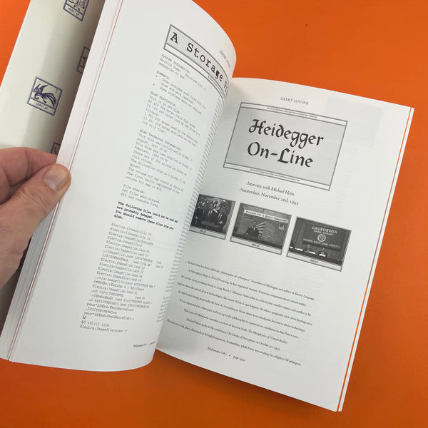 Dedicated to "Storage Mania," this issue explores data overload, archives, memory, and information storage in the digital age, while incorporating early internet-sourced imagery. It also bundles the groundbreaking Doors of Perception 1 CD-ROM (from the 1993 conference on design, technology, and interactivity). Themes include virtual writing, operation re-store, and the planet under surveillance.