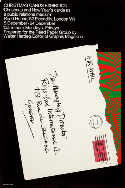 Designed in 1963 by the influential British design studio Fletcher/Forbes/Gill, this poster promotes a festive public exhibition titled "Christmas and New Year's Cards as a Public Relations Medium". It was commissioned by the Reed Paper Group, a major British paper manufacturer known for its innovative marketing and sponsorship of design initiatives during the post-war era. The exhibition was curated and prepared by Walter Herdeg, the Swiss editor-in-chief of the prestigious international design magazine Graphis (1944–1988).