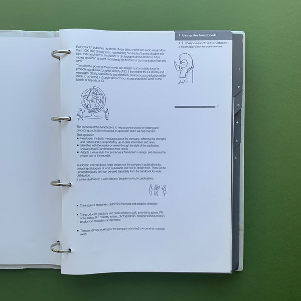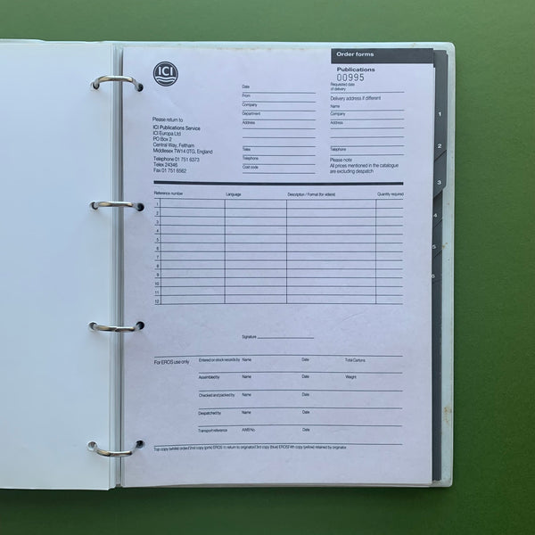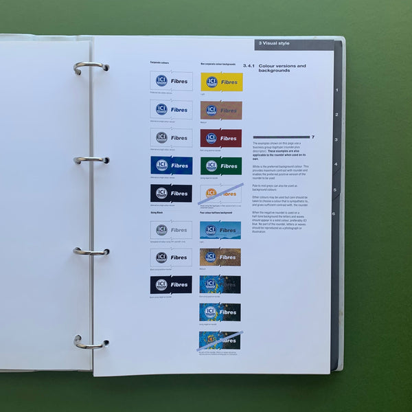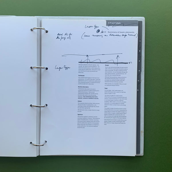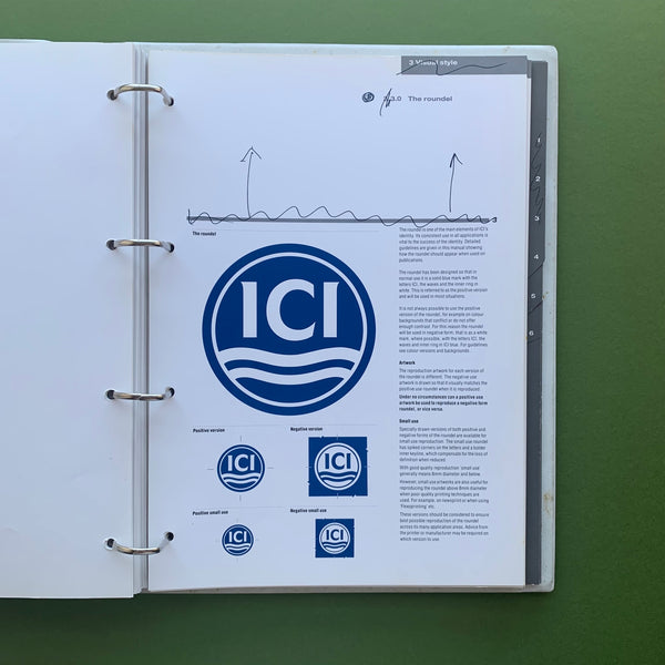 Designers file proof copy of ICI ‘Publications Handbook’ (unpublished). See my other ICI listing for a copy of the final published document. Binder contains two matching volumes, one with annotations and mark-ups.