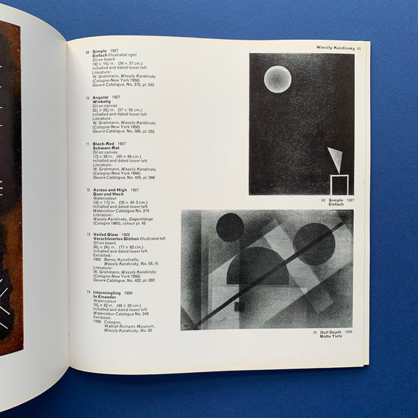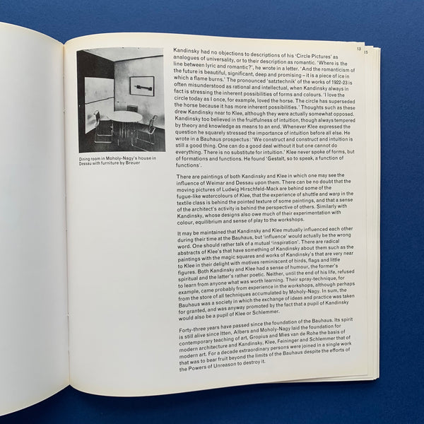 (Preface) 'The Directors of Marlborough Fine Art Limited wish to offer their sincere thanks to Professor Will Grohmann who responded so favourably to the idea of this exhibition and who is responsible for compiling the catalogue as well as the exhibition as a whole. They also acknowledge the invaluable help of Fräulein Annemarie Zilz. They are also indebted to the Bauhaus-Archiv, of Darmstadt, which has provided documentary material for the catalogue. Finally they would like to express their warmest gratitude to the many collectors, both in Europe and in America, who have so generously lent their pictures to this exhibition. They are particularly grateful to the families of the artists, Madame Nina Kandinsky, Frau Tut Schlemmer and Herr Felix Klee for their important contributions and to Professor Itten and Professor Albers who have both lent examples of their work. Since many of the collectors wish to remain anonymous, the names of all have been omitted from this catalogue.'