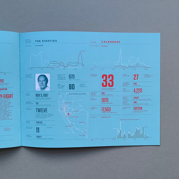 (From the publisher) 'After losing his father in 2010, Nicholas poured through his calendars, passports, slides and mementos to create a data-biography of his life. The narrative of these artefacts starts in pre-war Berlin and criss-crosses the world over eighty-one years. By cataloging and compiling the details of these objects, a multi-dimensional portrait of Gordon Felton’s life emerges through historical photos, detailed maps, charts and statistics.