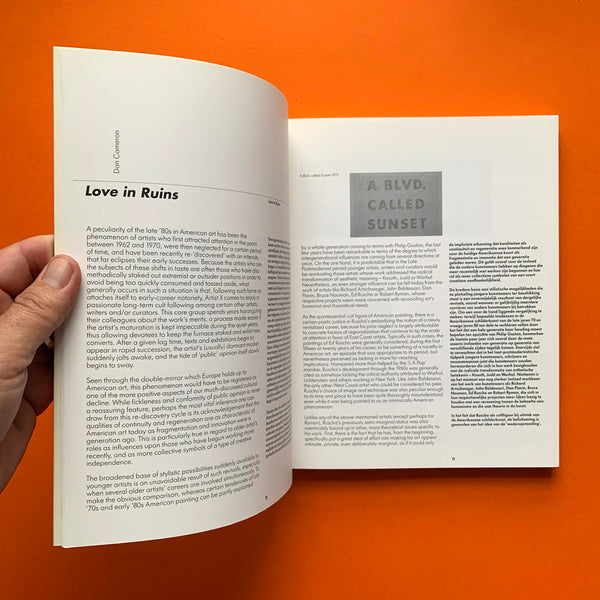 Published to accompany an exhibition of the work of American painter Edward Ruscha, organised by the Museum Boymans-van Beuningen in Rotterdam, the Serpentine Gallery in London, and the Museum of Contemporary Art in Los Angeles.