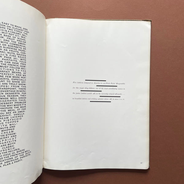 In contemporary advertising the "perfect" integration of design elements often demands unorthodox typography. It may require using "wrong" fonts, cutting hyphens in half, using smaller than normal punctuation marks; in fact, doing anything that is needed to improve appearance and impact.'