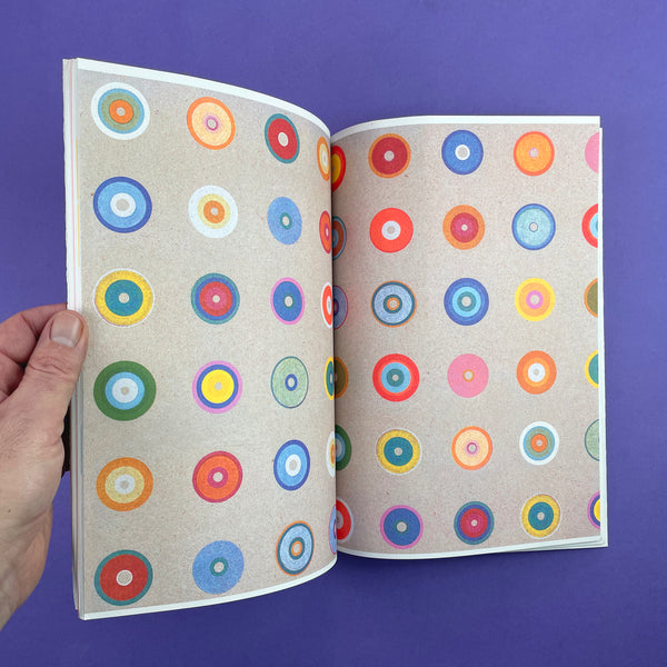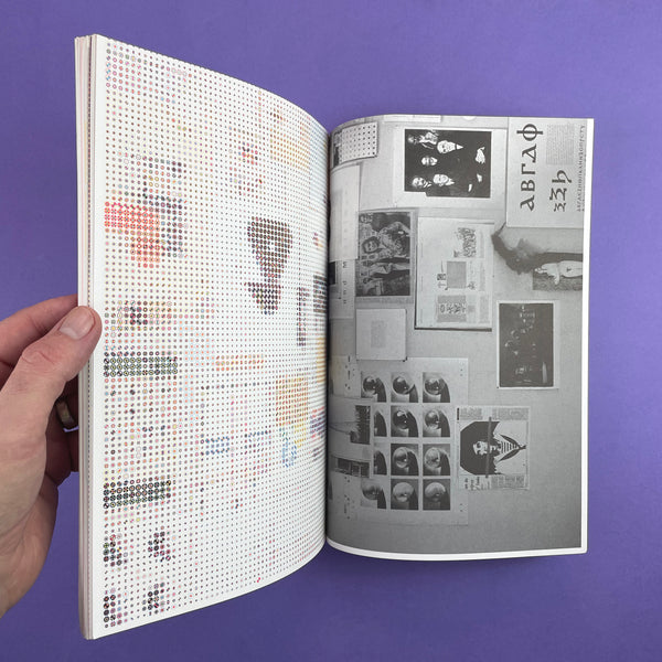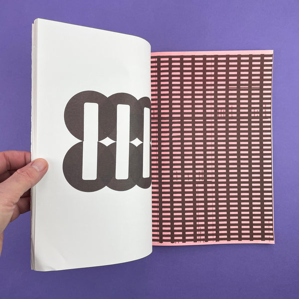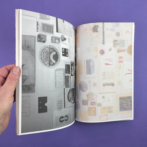 "The letterpress printed work by Karel Martens was made in the 1990s; it is reproduced here same-size. The screen images come from a film by KM about the pin-board wall of his studio. Of the four pages of computer prints the middle spread is derived from the work for the Amstelveen Theatre. The colour computer print, based on the black and white photograph of KM's pin-board wall, was made in 2004 especially for this book."