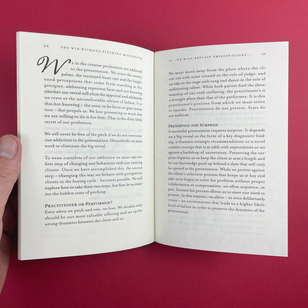 Transformative guide for creative professionals, consultants, and experts. It presents 12 bold proclamations to win business without free pitches or speculative proposals – focusing on specialisation, positioning as a respected authority, replacing presentations with diagnostic conversations, valuing expertise over commodities, and reclaiming control in client relationships for higher profits and integrity.