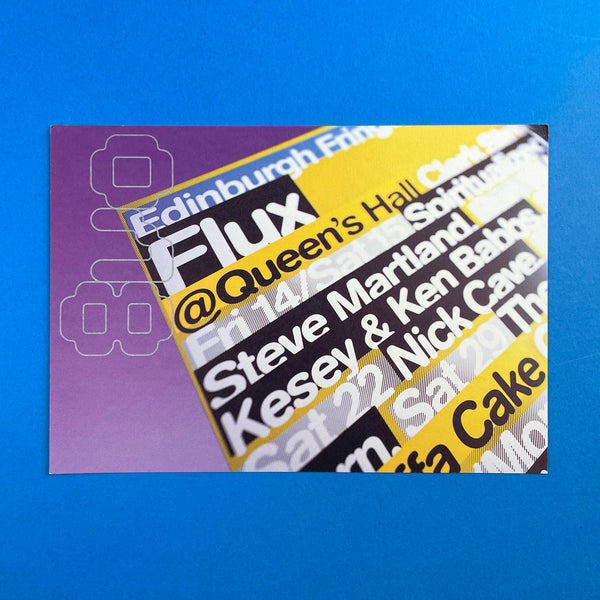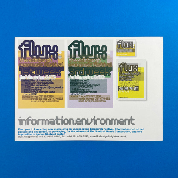 (Item 2) 'Flux: year 1. Launching new music onto an unsuspecting Edinburgh Festival. Information-rich street posters and gig guides, cd packaging, for the winners of The Scottish Bands Competition, and one impossible to ignore 48-sheet poster.'