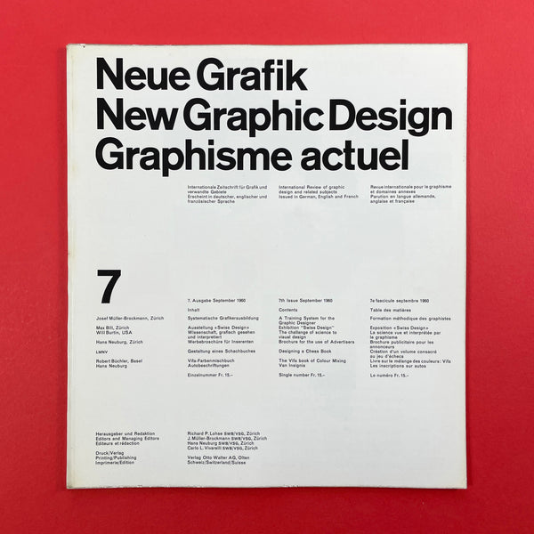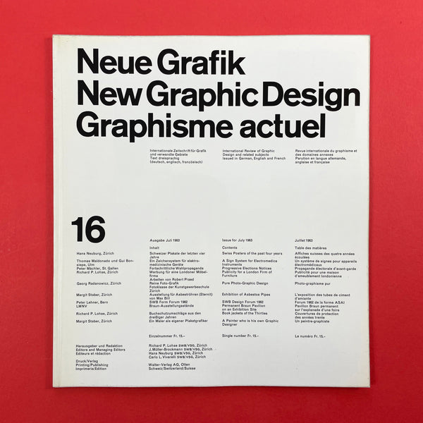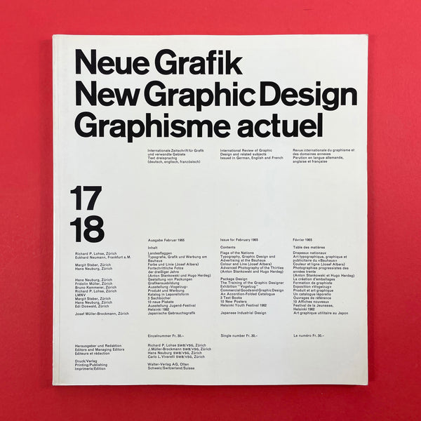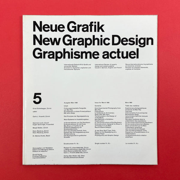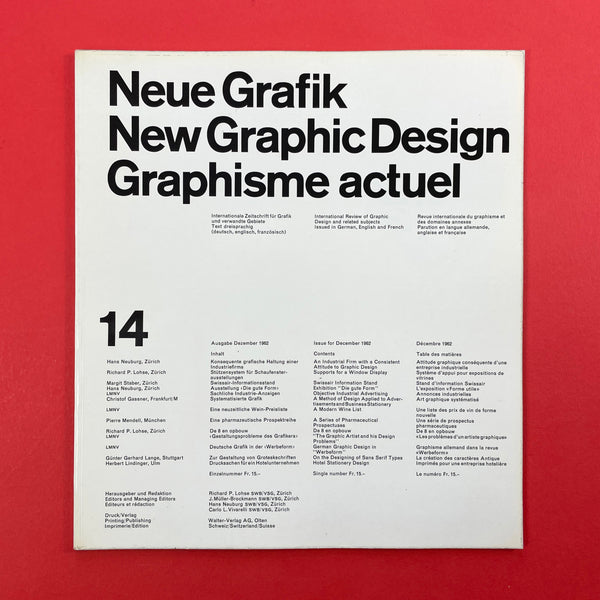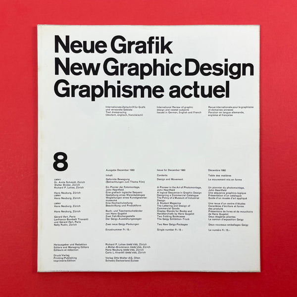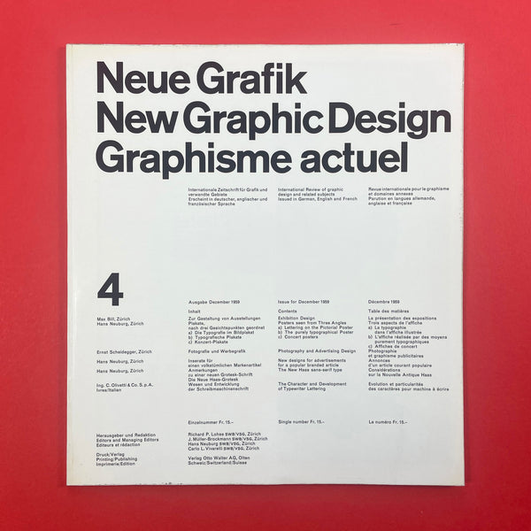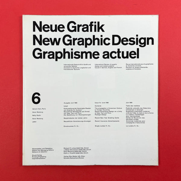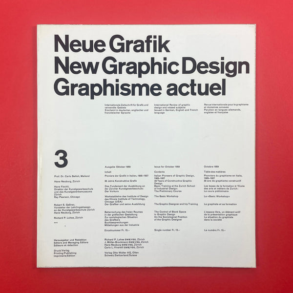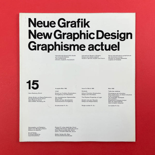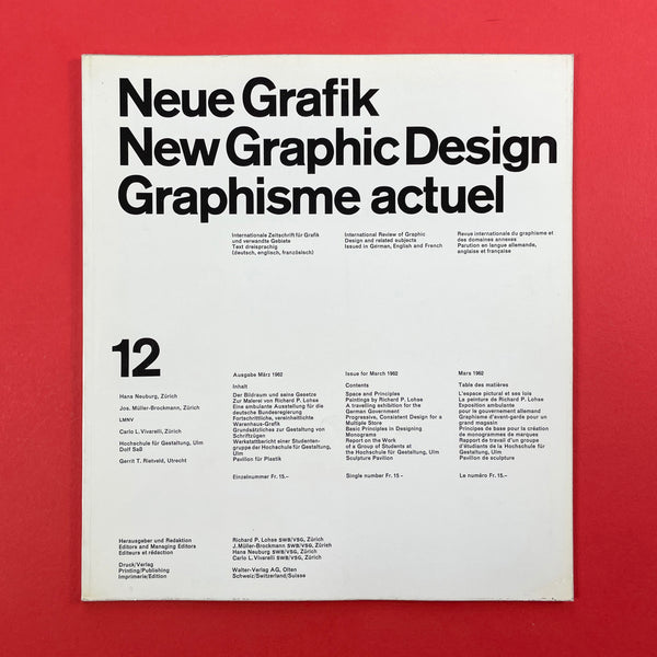 Neue Grafik was a groundbreaking quarterly graphic design journal that ran from 1958 to 1965. It served as a pivotal platform for promoting the principles of the Swiss Style, also known as the International Typographic Style (or International Style), which revolutionised modern graphic design with its emphasis on clarity, objectivity, and functionality. The journal was founded in Zurich, Switzerland, following the 1958 "Konstruktive Grafik" exhibition at the Zurich Kunstgewerbemuseum, where key figures in Swiss design showcased their work. It was initiated by renowned designer Josef Müller-Brockmann, who envisioned it as an "International Review of Graphic Design and Related Subjects."