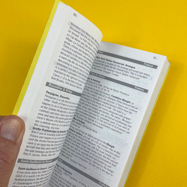 Feedback is a unique travel guide compiled and published by Pentagram. First released in 1974, it captures insider recommendations from the creative community - designers, artists, writers, architects, and photographers - focusing on hidden gems, museums, restaurants, and offbeat spots in major cities worldwide. Rather than standard tourist fare, it reflects the discerning eye of visual professionals, blending practical tips with quirky, personal insights. The book embodies Pentagram's ethos of collaborative creativity and has evolved into a cult favourite for travellers seeking authentic experiences beyond guidebook clichés.
