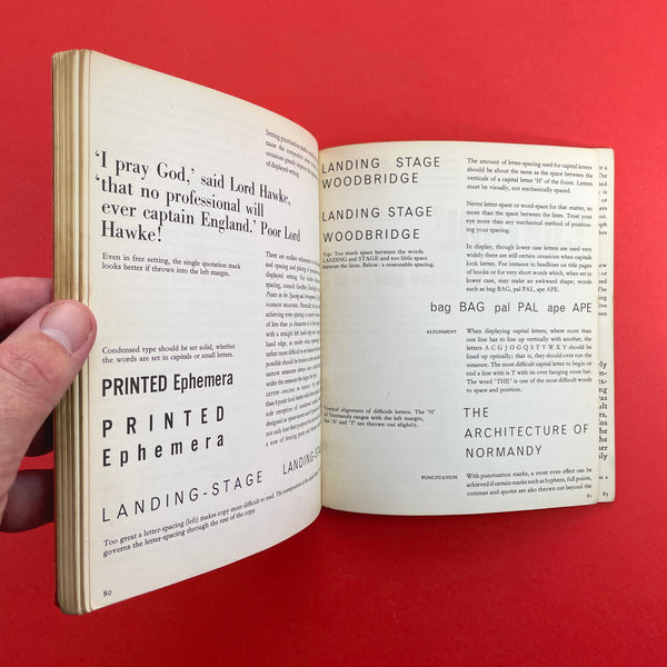 (Foreword) 'The author sets out to demonstrate what typography is, and particularly what it is to the modern graphic designer. The first chapter describes the influences that have shaped modern typography, with particular emphasis on the effects of the teachings of William Morris and the Bauhaus typography workshop on the one hand, and the modern movements of painting and design, such as Dada and De Stijl on the other. This is followed by a chapter on present-day trends in typographic communication. Methods of preparing layouts for books and periodicals are discussed and there are some interesting suggestions for improving the appearance of advertising display. The final chapter, 'Rules are made to be broken', is a most stimulating selection of examples of experimental typography.'