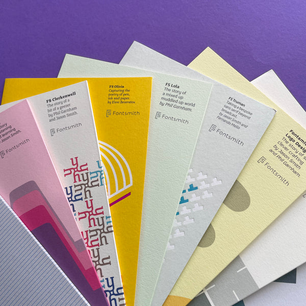 Celebrated anniversary project (and promotional campaign) marking a decade since Fontsmith's founding. Created in collaboration with creative agency ThreeTenSeven, it serves as a beautifully crafted collection of booklets (often referred to as a boxset or series of "Font Stories") that narrate the development, inspiration, and creative journeys behind Fontsmith's growing library of high-quality typefaces.