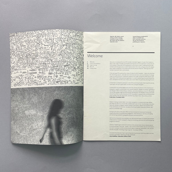 ‘Condensed' was a member-orientated magazine produced by the International Society of Typographic Designers (ISTD). As part of an initiative to offer a wider range of member-only benefits and resources, the publication was offered exclusively to ISTD members. Condensed provided members with the opportunity to submit material and air their views, acting as a forum for debate about matters typographic from professional and educational viewpoints, reflecting what ISTD members themselves feel is most relevant.
