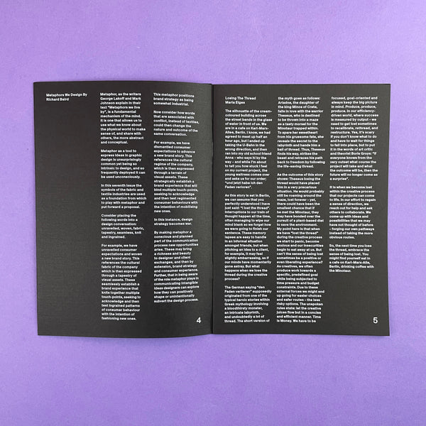 In this issue Jack looks back, casting a critical eye over the modernist project and then making a proposal for the future. Looking back to look forward is the foundation of the LogoArchive project. This is explored and expressed materially in Issue 7 using a gate-folded cover and in the numbering of the pages. Readers have to flick back to move forward through the zine..' (Source) LogoArchive